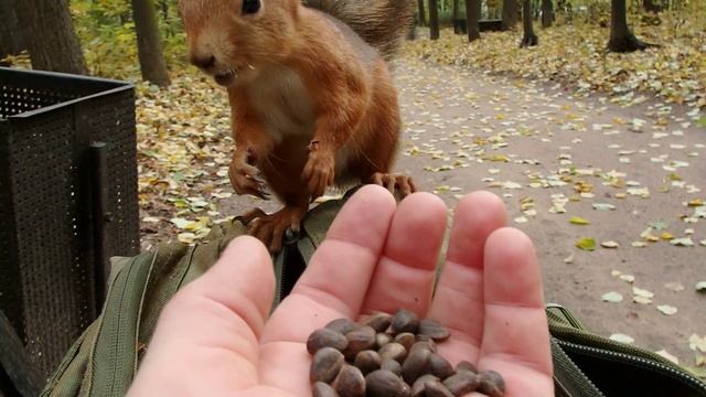 Кормил бельчонка, но тут прибежал Ушастик