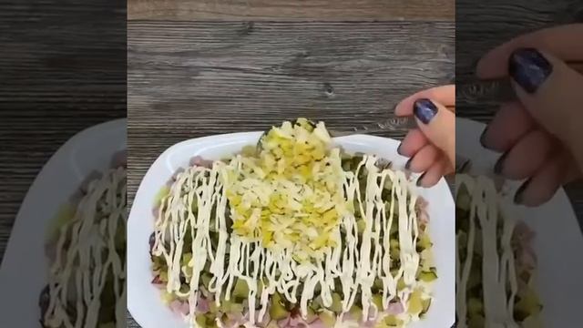 Салат ''Тигровая шубка'' который украсит ваш новогодний стол 🤩 Ингредиенты: ▫️300 гр. копченой курицы ( ветчина, карбонат по вашему вкусу ) ▫️3 шт. вареного картофеля ▫️2 шт. соленых огурцов ▫️4 яица вареных вкрутую ▫️3 вареные моркови ▫️чернослив ▫️майонез ▫️соль по вкусу. Приятного аппетита!