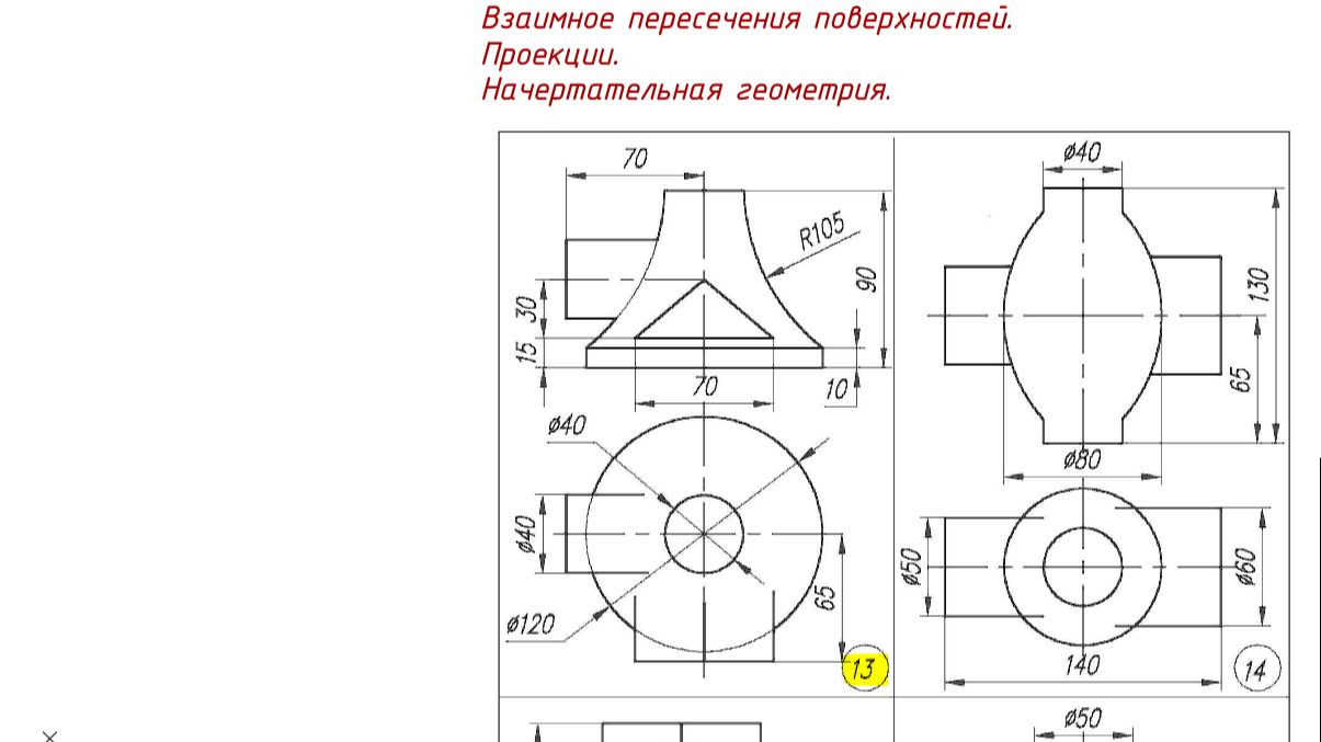 Взаимное пересечения поверхностей. Проекции. Начертательная геометрия. Autocad. №3