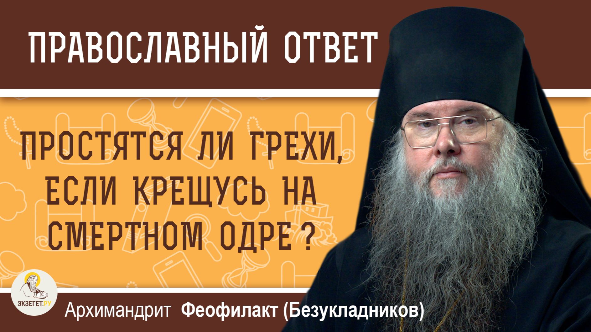 Друзья, подписывайтесь на наш канал в Телеграмм https://t.me/ekzeget Ищите нас так же во ВКонтакте: https://vk.com/ekzeget_video и RuTube: https://rutube.ru/channel/23947275/ Дорогие друзья! В это непростое время мы просим Вас посильно поддержать наш проект в создании нашего нового контента. Даже небольшая сумма окажется значимой лептой в нашем общем деле. Отправить пожертвование можно на карту: 2202208055022330 С благодарностью за понимание и молитвенную помощь! Команда Экзегет. В сегодняшнем видео на библейском портале ЭКЗЕГЕТ вместе с архимандритом Феофилактом (Безукладниковым), наместником Ново-Иерусалимского монастыря, отвечаем на вопрос: "Простятся ли все грехи, если крещусь на смертном одре?" 🔸 Таинство Крещения 🔸 Прощение грехов ❗ Почта для Ваших вопросов: admin@ekzeget.ru ❗ ПОДПИСЫВАЙТЕСЬ на наш Канал, чтобы не пропустить новые видео на Библейские темы ❗ Удобно смотреть видео к главам Библии на медиатеке: https://ekzeget.ru/mediateka/video/ НАШ САЙТ https://ekzeget.ru/ Мы в RuTube https://rutube.ru/channel/23947275/ Мы в ВКонтакте https://vk.com/ekzeget_video #архимандрит_феофилакт #экзегет #православный_ответ #крещение #душа #вера #жизнь_вечная #Иисус_Христос #Господь #Бог #христианство #православие #истина