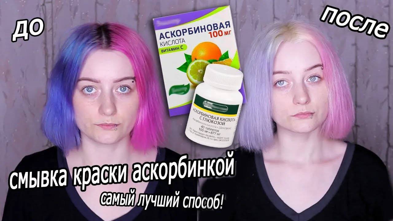 КАК СМЫТЬ КРАСКУ с ВОЛОС АСКОРБИНКОЙ | Самый Лучший способ! Витамин С