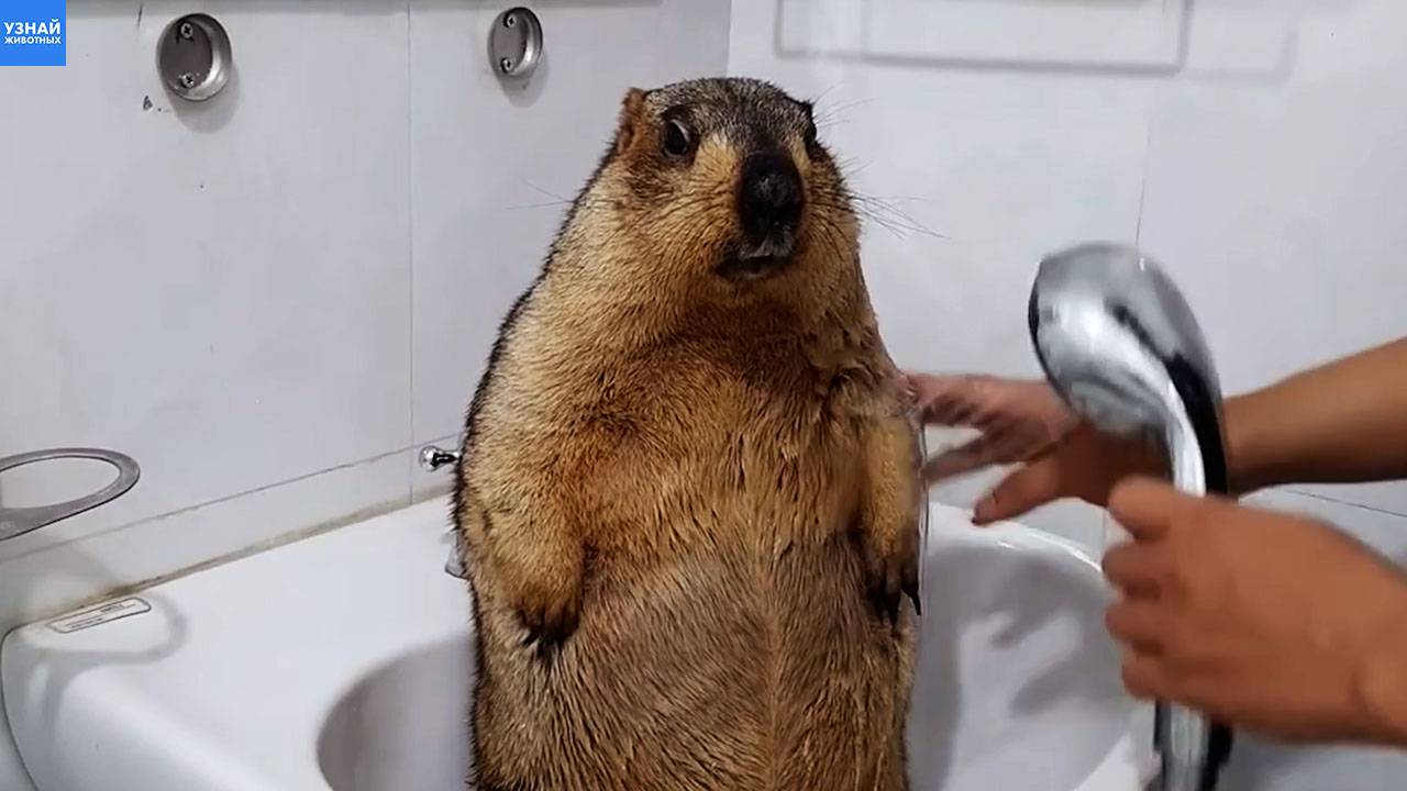 Сурка накормили арбузом и мороженым, а потом помыли в душе 🤣