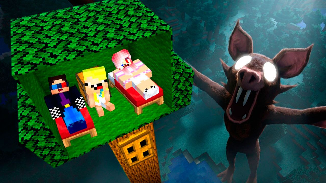 🌳🦇ПОСТРОИЛИ ДОМИК НА ДЕРЕВЕ ОТ ЛЕТУЧЕЙ МЫШИ В МАЙНКРАФТ! 99 НОЧЕЙ В ЛЕСУ MINECRAFT