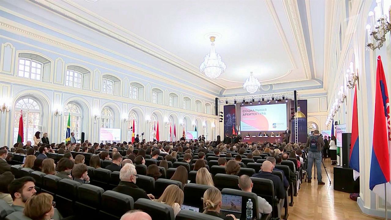Собрались политики, ученые, эксперты, представители аналитических центров из России и еще более двух десятков стран. Одно из главных мероприятий посвящено презентации первого в мире учебника по социальной архитектуре. Его написали ведущие специалисты в области общественных и гуманитарных наук, в том числе представители факультета политологии МГУ.