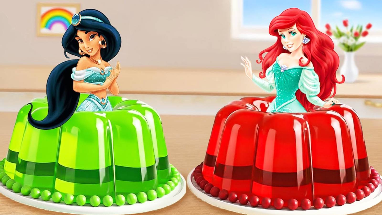 Мультики для детей про мини-выпечки. Желейный торт «Ариэль и Жасмин» 👑. Мультики для малышей.